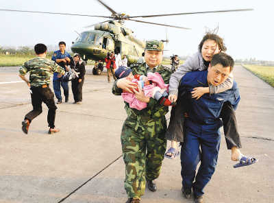 凱攝 | 今天記者從成都軍區(qū)抗震救災(zāi)聯(lián)合指揮部獲悉:截止到15日23時(shí)35分,救援部隊(duì)已進(jìn)入所有重災(zāi)鄉(xiāng)鎮(zhèn)。繼14日解放軍和武警官兵進(jìn)入所有受災(zāi)縣城以來(lái),四川地震災(zāi)區(qū)的抗震救災(zāi)工作又向前推進(jìn)一步。目前,已有超過(guò)10萬(wàn)名解放軍、武警官兵和民兵預(yù)備役人員在一線搜救生存者。 據(jù)了解,到5月14日18時(shí),四川地震災(zāi)區(qū)還有58?jìng)(gè)鄉(xiāng)鎮(zhèn)沒(méi)有救援部隊(duì)進(jìn)入。為盡快解救這些地區(qū)受困群眾,成都軍區(qū)從5月14日深夜到今天凌晨緊急調(diào)動(dòng)救援官兵采取徒步強(qiáng)行軍方式,靠?jī)蓚(gè)腳板走進(jìn)了其中的15個(gè)受災(zāi)鄉(xiāng)鎮(zhèn)。 據(jù)介紹,一些偏遠(yuǎn)的受災(zāi)鄉(xiāng)鎮(zhèn)由于道路阻斷、地形復(fù)雜及惡劣天氣影響,延緩了救災(zāi)部隊(duì)進(jìn)入的時(shí)間。這些鄉(xiāng)鎮(zhèn)包括受災(zāi)嚴(yán)重的汶川縣、茂縣、理縣的9個(gè)鄉(xiāng)鎮(zhèn)和綿陽(yáng)市的北川羌族自治縣、平武縣的34個(gè)鄉(xiāng)鎮(zhèn)。為盡快打通這些受災(zāi)鄉(xiāng)鎮(zhèn)的通道,盡快解救受困群眾,成都軍區(qū)要求救援部隊(duì)務(wù)必在今天午夜前進(jìn)入上述鄉(xiāng)鎮(zhèn)。 為此,成都軍區(qū)投入了大量人力物力,不惜一切代價(jià)運(yùn)送兵力,其中,向交通條件極為惡劣的10個(gè)鄉(xiāng)鎮(zhèn)救災(zāi)點(diǎn)出動(dòng)了106架次的直升機(jī)。目前,作為救援大部隊(duì)先遣隊(duì)的近1000名官兵已在各個(gè)鄉(xiāng)鎮(zhèn)開(kāi)展救援行動(dòng)。 本報(bào)成都5月15日電