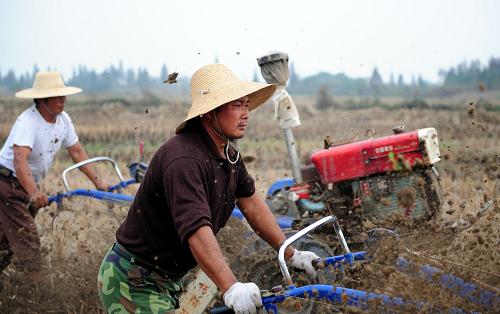 10月20日,通過“土地流轉(zhuǎn)經(jīng)營專業(yè)合作社”承包了420畝地的安徽省肥西縣木蘭村種糧大戶高宗來(右)在田間勞動。安徽省肥西縣木蘭村于2007年成立了“土地流轉(zhuǎn)經(jīng)營專業(yè)合作社”,大大提高了土地利用率和經(jīng)營效益,促進了土地、勞動力等生產(chǎn)要素的合理流動。 |