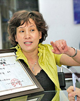 。保梗福澳辏保苍拢保比,19歲的溫州姑娘章華妹從溫州市工商行政管理局領到了一份特殊的營業(yè)執(zhí)照——工商證字第10101號。讓她想不到的是:這張用毛筆填寫的并附有相片的營業(yè)執(zhí)照,竟然成為了中國第一份個體工商業(yè)營業(yè)執(zhí)照。她本人則成為了“中國第一個工商個體戶”。 這個執(zhí)照給章華妹帶來了不少榮譽。2004年11月4日,在“2004CCTV中國十大最具經(jīng)濟活力城市”揭曉頒獎典禮上,溫州獲得“活力城市”獎杯,章華妹和代表溫州市的另外四位嘉賓在頒獎儀式上集體亮相。另四位是全國知名的企業(yè)家,章華妹做夢也沒想到有一天能和他們一起代表溫州上臺領獎。 現(xiàn)在的章華妹是“偉星”紐扣溫州總代理、華妹服裝輔料有限公司的法人代表。她的店鋪加上倉庫已經(jīng)有200多平方米,主要做批發(fā),生意十分紅火。章華妹說,我現(xiàn)在還在干個體戶,我會把個體戶一直干下去的,F(xiàn)在,我的兒子也在做生意,他比我幸運,個體經(jīng)營環(huán)境和社會地位都比我那時強多了。