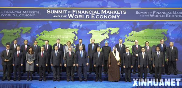 11月15日,中國國家主席胡錦濤在華盛頓出席二十國集團(tuán)領(lǐng)導(dǎo)人金融市場和世界經(jīng)濟(jì)峰會。這是與會各國領(lǐng)導(dǎo)人及有關(guān)國際組織負(fù)責(zé)人集體合影。 新華社記者